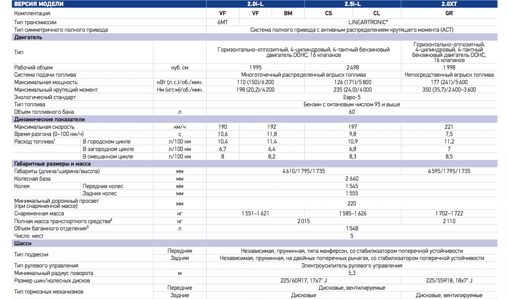 В новинке от «Субару» устанавливается вариатор Lineartronic либо шестискоростная механика. Руль. Беда многих кроссоверов в том, что являясь по сути своей довольно скучными машинами, они транслируют это ощущение и на руки водителя - большой руль, тонкий обод, обилие кнопок. После последнего рестайлинга «Лесник» получил рулевое колесо, которое раньше крутилось в более дорогом «Аутбэке». Руль удобный, хваткий, благодаря удачным наплывам и толстому ободу. Но самое приятное - обогрев рулевого колеса и задних сидений доступен уже в базе. С начальных комплектаций Снял рестайлинг и симптомы детских болячек нового поколения, которое выпускается с 2012 года. Подвеска стала собраннее, реакции на педали газа мягче, расход топлива меньше, интерьер интереснее.