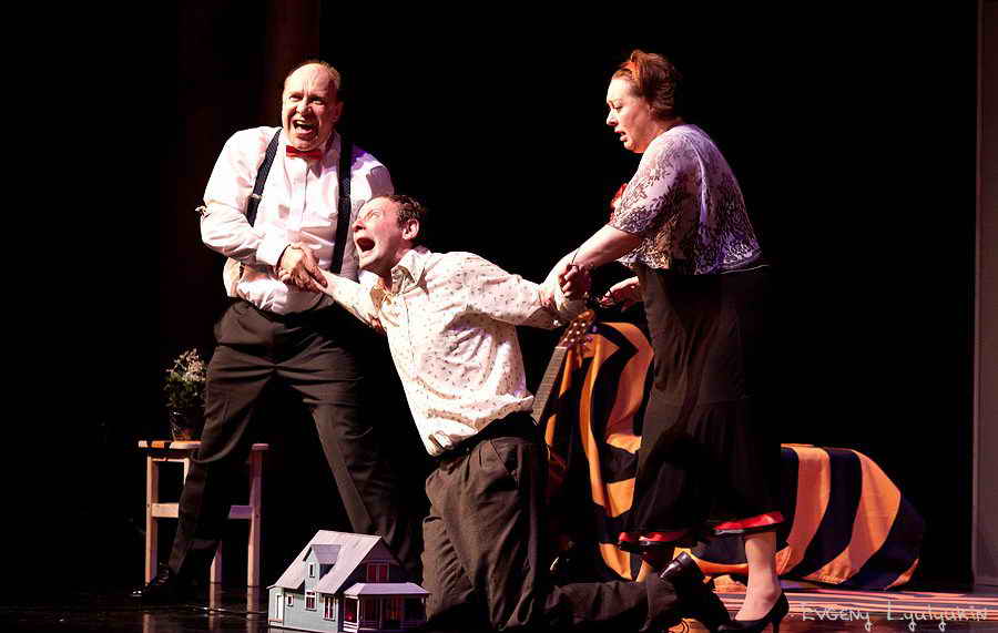 Яркий спектакль, где все события ежеминутно переворачиваются с ног на голову. Хотя, казалось бы, ничего сверхъестественного в сюжетной коллизии нет – в жизнь супружеской пары Дмитрия и Елены неожиданно вторгается некто Крамов. С помощью колких реплик он заставляет мужа и жену высказывать более резкие и откровенные мысли друг о друге.